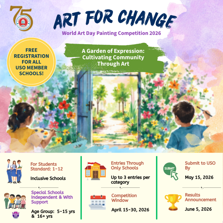 Our 75-yr theme is linked to SDG4: QualityEducation Rooted in our theme Empower, Educate & Evolve USO’s journey aligns with SDG 4: Quality Education ensuring inclusive, equitable, and lifelong learning for all. As we celebrate 75 years, this shared vision continues to shape every initiative—bringing meaningful change to classrooms and communities. Designated as our two-year theme, Empower, Educate & Evolve serves as a guiding force to reimagine learning, strengthen educational ecosystems, and spark lasting transformation.