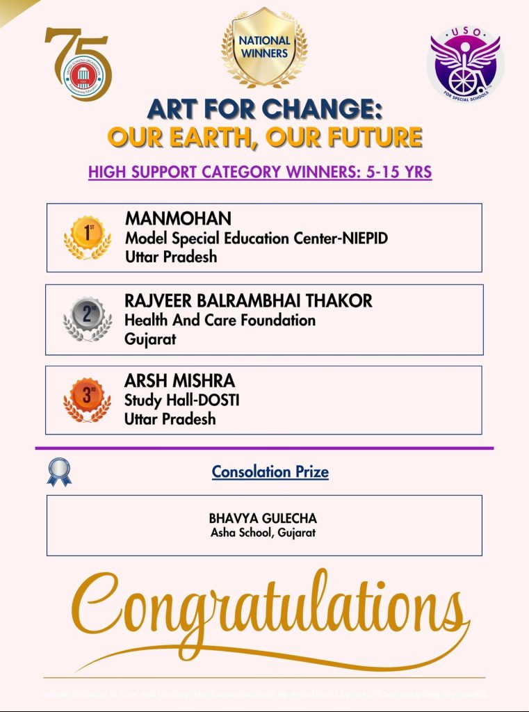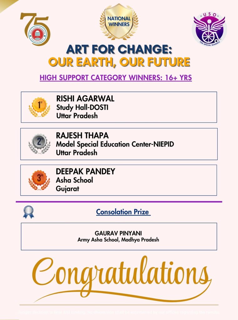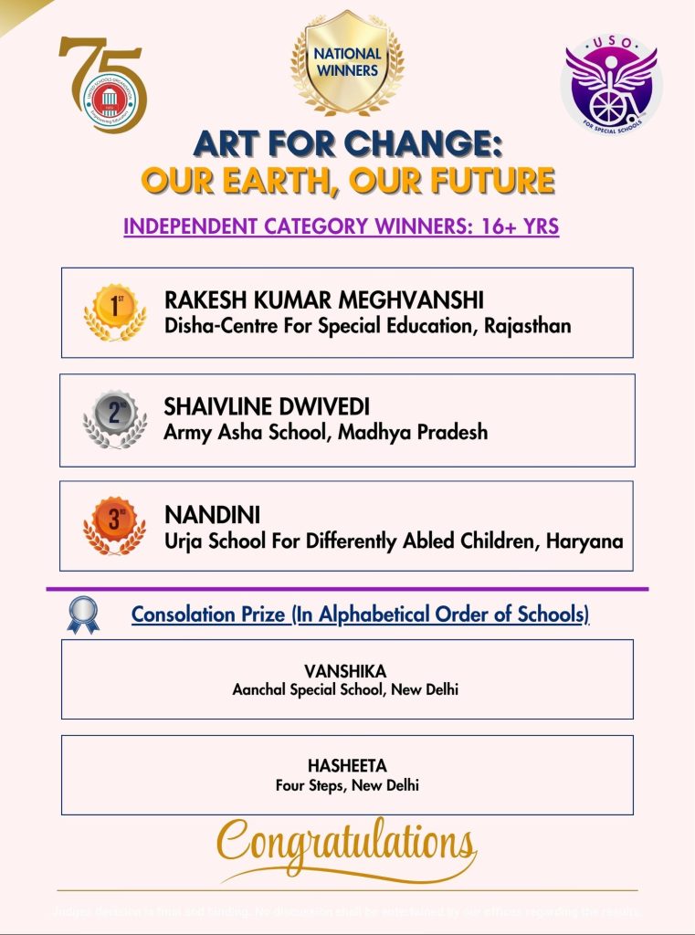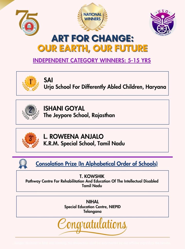 - School to conduct the competition during the week of Earth Day – April 22 – 25, 2025, and submit photos to: info@usoindia.org or (specialschools@usoindia.org).